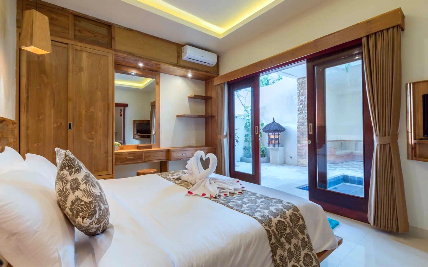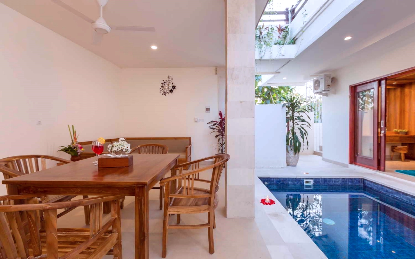 Each villa features spacious, air-conditioned bedrooms with ensuite bathrooms, a fully equipped kitchen, and an open-plan living area that seamlessly connects to a private pool and lush tropical garden. Enjoy the perfect blend of modern comfort and traditional Balinese charm with thoughtful amenities, including free Wi-Fi and flat-screen TV’s. Whether you’re lounging by the pool, enjoying an outdoor meal, or exploring the vibrant surroundings, Nalin Bali Villas provides an idyllic setting for your Bali escape. Located near the iconic Uluwatu beaches and popular attractions, Villa Nalin is the perfect base to explore the beauty of southern Bali while enjoying a romantic and secluded escape. Villa Nalin creates a peaceful ambiance for your stay.