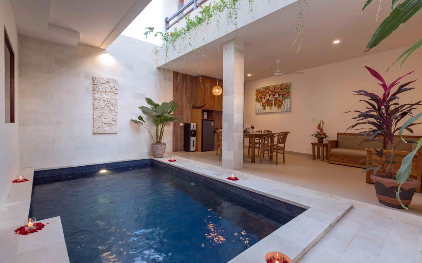 Nalin Bali Villa offers a tranquil retreat in the heart of Bali, perfect for families, couples, or groups seeking a private getaway.